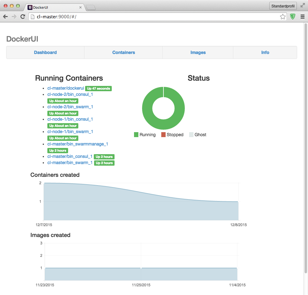 So let’s open the DockerUI with the following URL: http://cl-master:9000.