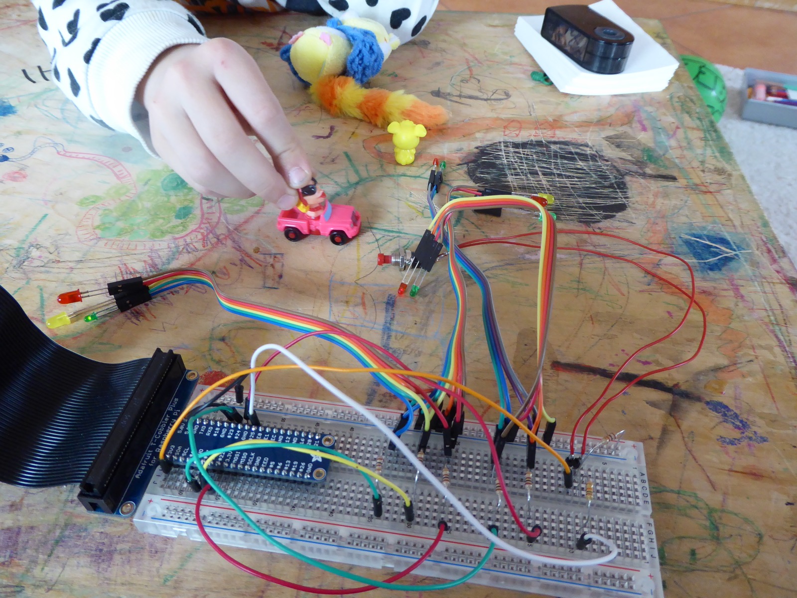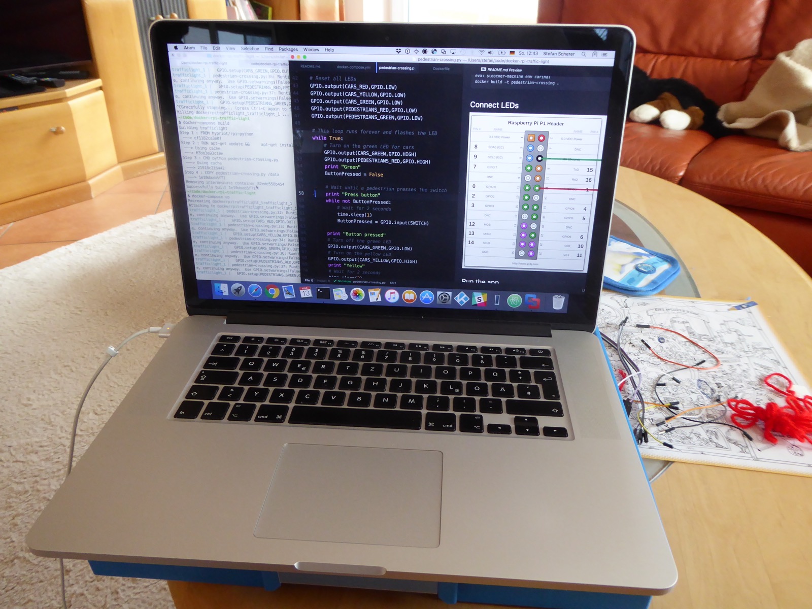 Sun, Mar 13, 2016My seven year old asked me how does a traffic light work. Before explaining too much we put some LEDs and wires together and did a hands-on tutorial. Finally we had a pedestrian crossing with a push button controlled by an app - of course - running dockerized on a Raspberry Pi 3.